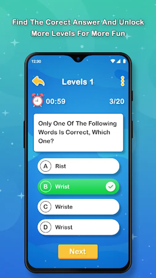 This English spelling testing app will help to Increase your GK (General knowledge) of English spelling, so it will improve your English to solve Words Quiz, Word Puzzles, Guess the Word like Word Games.