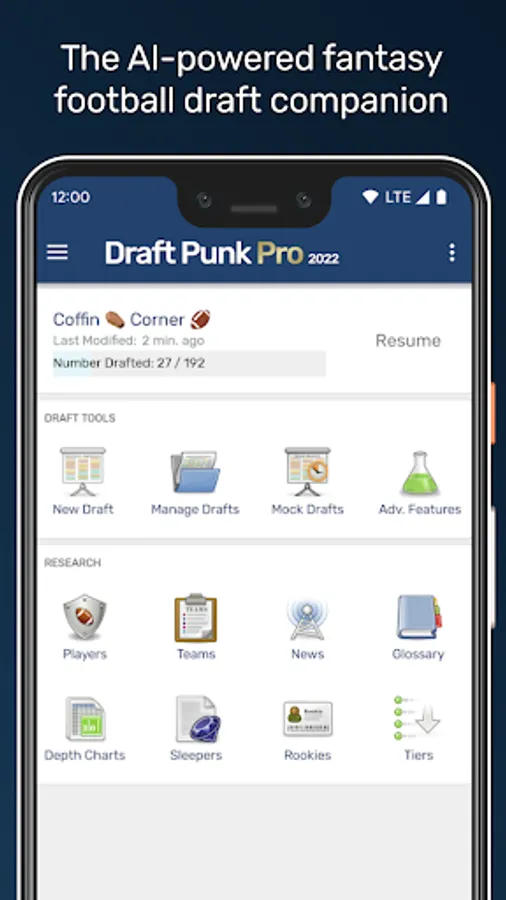 Draft Punk is the most advanced fantasy football draft kit, companion app, and Mock Draft simulator today. It uses advanced AI and machine learning under the hood to generate the most accurate rankings for your league, custom draft pick recommendations, player tiers, sleepers, and more.
