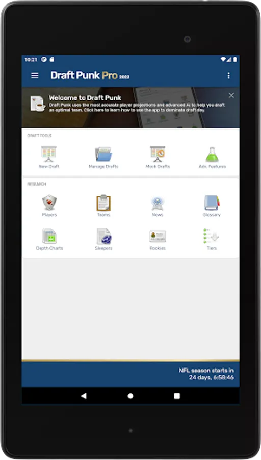 * Upgrade to Draft Punk Pro! within the app - remove ads, get custom rankings, mock drafts, IDP, depth charts, and more. This is a yearly upgrade.