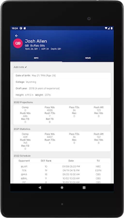 You can also have multiple drafts for each league. As you draft you can mark players as drafted or interested. Any progress you make gets automatically saved so you can pick up where you left off. Finally, view player profiles including info, stats, and player news.