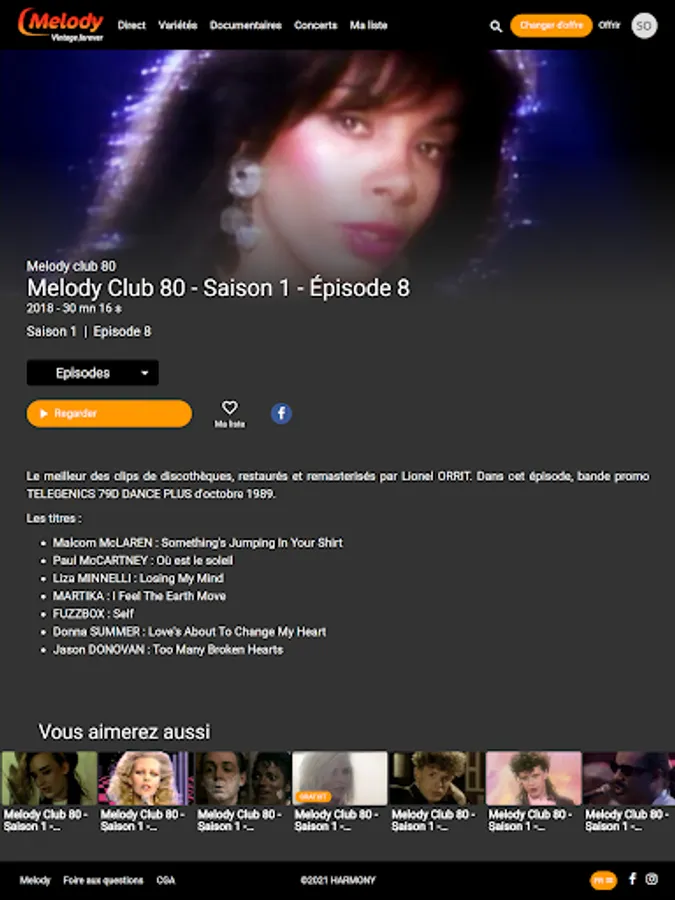 Enjoy unlimited access to Melody, the only TV channel dedicated to the best of the 60s, 70s, 80s and 90s.