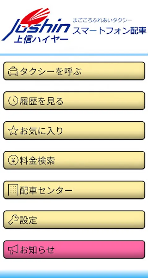 Use your smartphone to use the smartphone app "Joshin Higher Smartphone Taxi Dispatch"