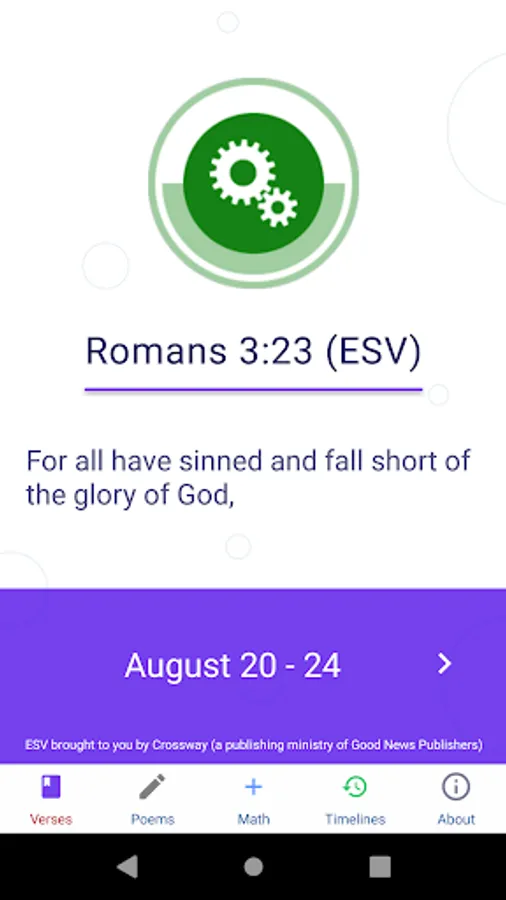 An app for weekly memory verses. This app automatically moves to the next week's verse so you always see the current weeks verse when you open the app.
