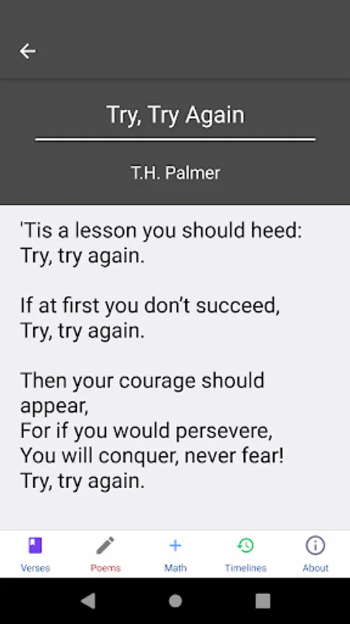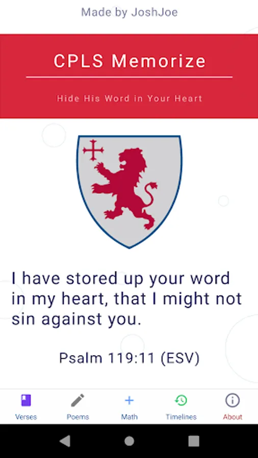 The app uses memory verses, poems and timeline events from CPLS's K-6th grade lists.