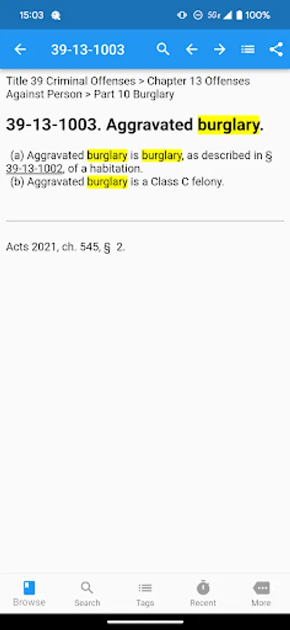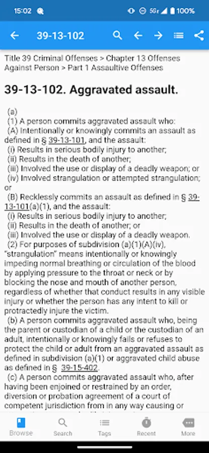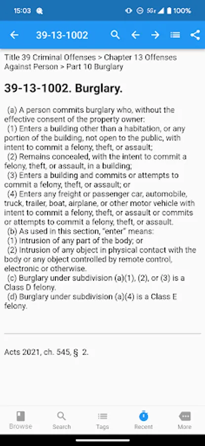 TCA Plus contains the entire 2023 version of the Tennessee Code in an easy to use, well-formatted, searchable form. You can now easily carry the thousands of pages of the Tennessee Code with you everywhere on your phone.