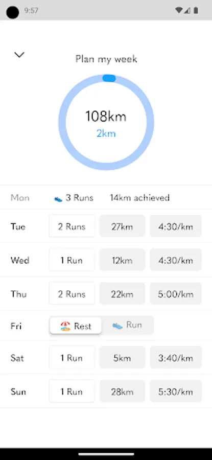 Kaizen analyses all your past race performances and recent training to provide you with a race prediction (including a marathon finish time prediction). With this data, it builds a personalised training programme that sets you a weekly running target to reach each week in order to achieve your bigger goal. Kaizen gives you the flexibility to train how you like, without the rigidity of other generic training plans.