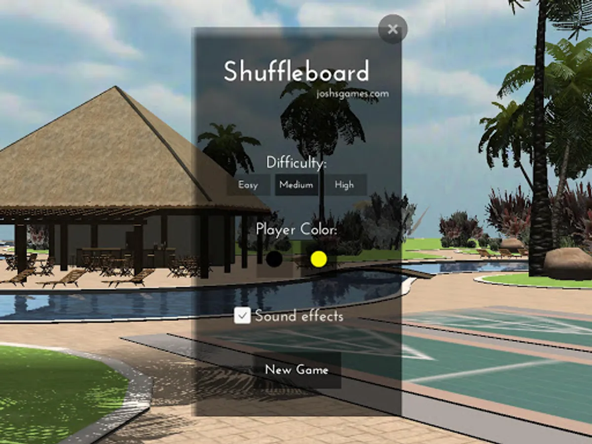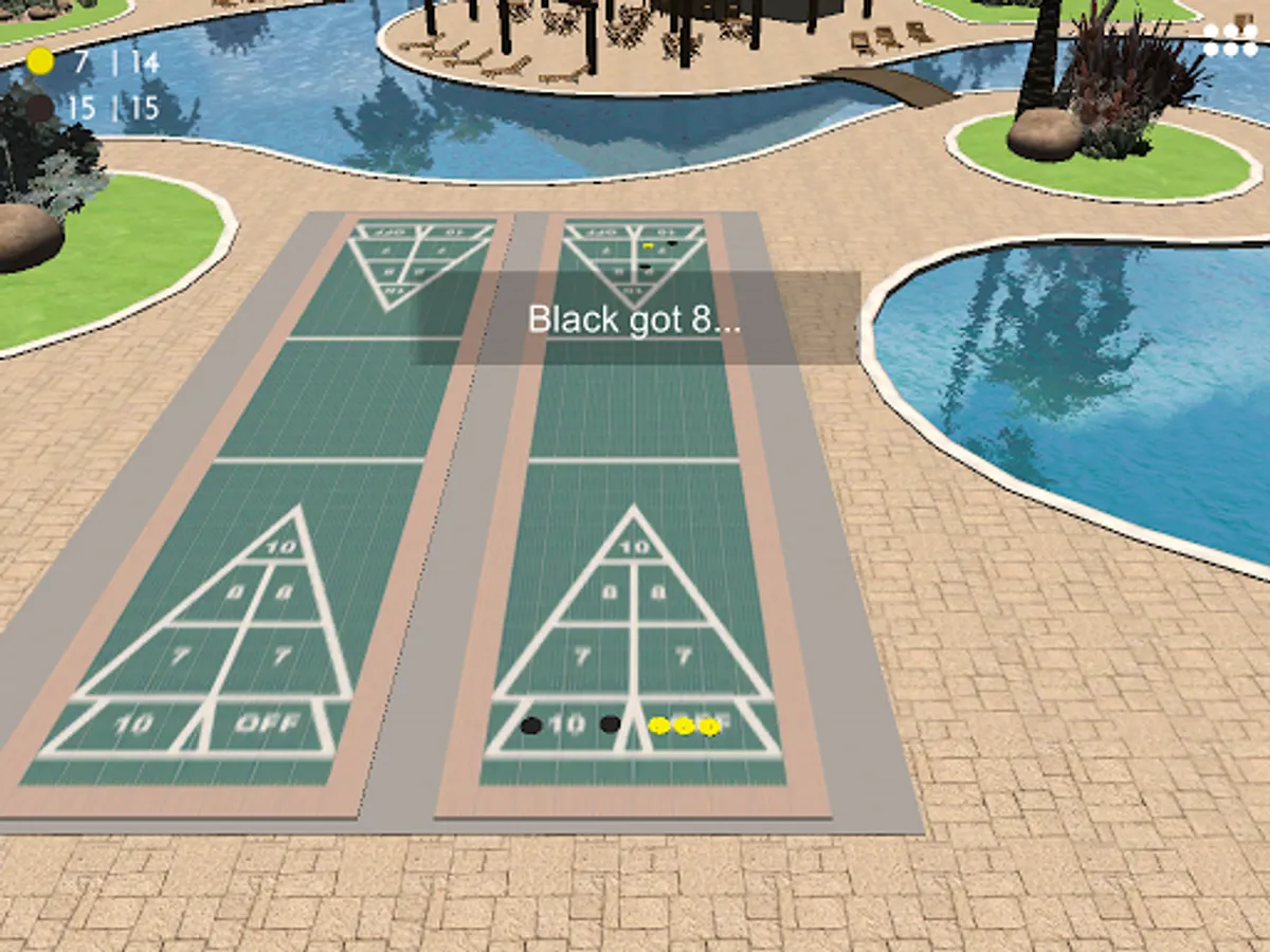A fun, realistic 3d outdoor deck shuffleboard game set in a beautiful tropical resort.