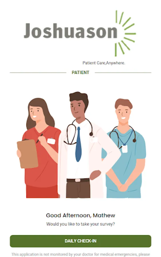 The Joshuason app provides an automated conceierge medicine experience for patients. It automates daily patient check-ins, reporting clinical responses to practices for review and follow-up if needed. Patients can receive additional contacts throughout the day, such as for medication reminders. All using a secure HIPAA-compliant platform.
