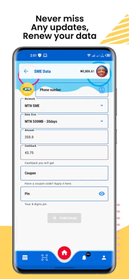 - Instant recharge of airtime & data bundle for MTN, Glo, Airtel, 9mobile, MTEL, Smile.