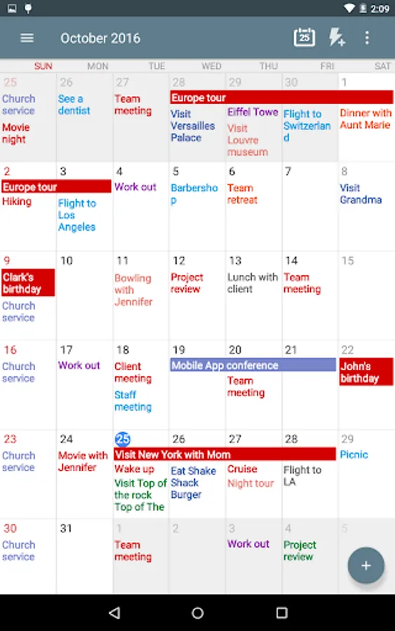▪ Modern and sleek user interface for 6 views including day view, week view, month view, custom view, agenda view and year view.