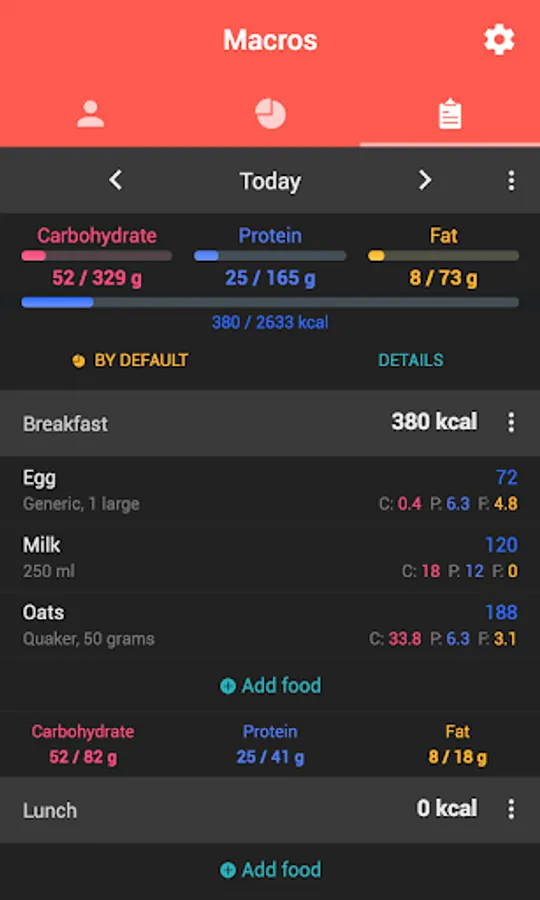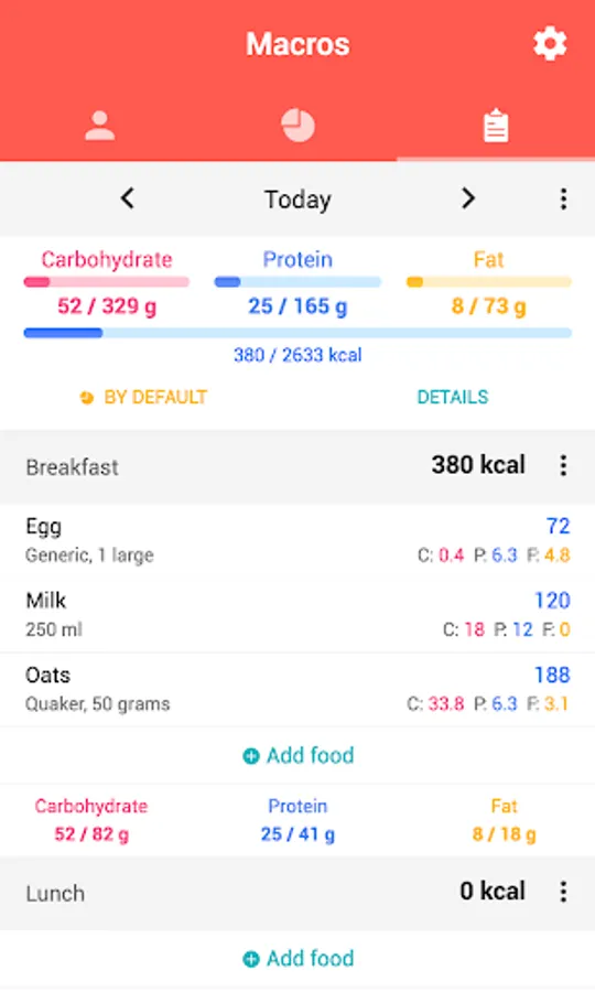 -Measure your progress of intake of calories, carbohydrates, proteins and fats.