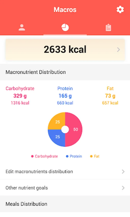 -Edit your caloric requirement and macronutrients, both in percentages and grams.