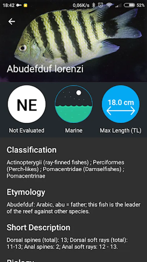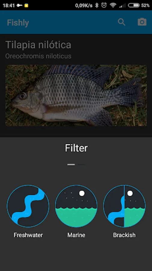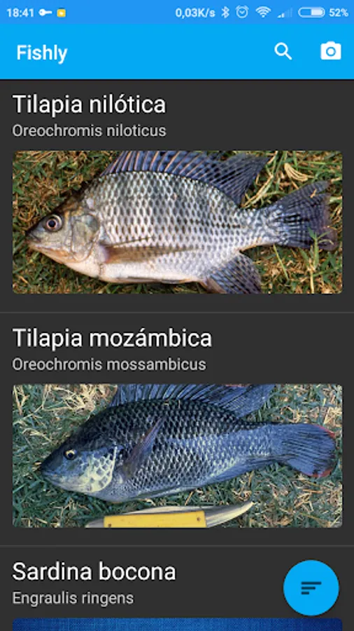 Fishly vous aide à identifier et à connaître toutes les espèces de poissons à l'aide de ses filtres et de ses moteurs de recherche, vous offrant une interface claire et intuitive. Il comprend également une fonction de reconnaissance visuelle avec jusqu'à 100 espèces de poissons différentes.