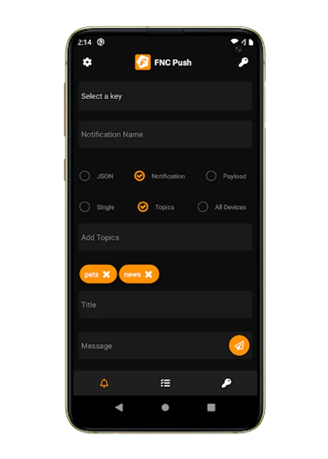 Paid version free of advertisement of Firebase Notification Center (FNC Push). This is a great tool to test and send your Firebase push notifications to your applications with Firebase Cloud Messaging embebed.