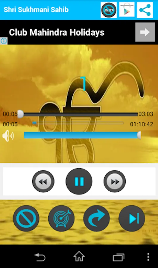 # Pause Mode : while doing path , if you get something important or you want to continue doing path later, just use this option, Audio will get itself stopped after completion of current ashtapadi. You can resume from next ashtapadi later.