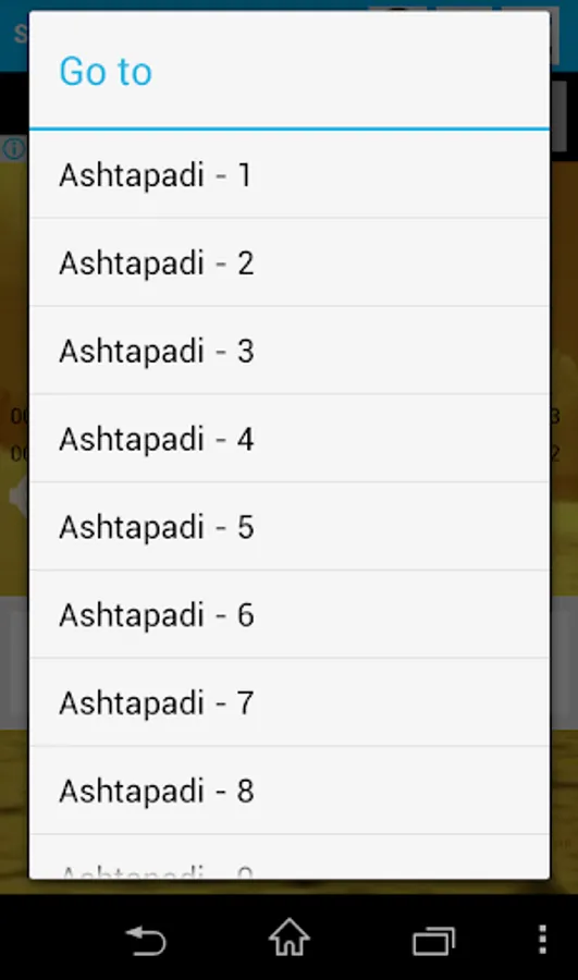 #Go to : if you want to do path starting from a particular ashtapadi , you can simply use this option and continue from where you want.