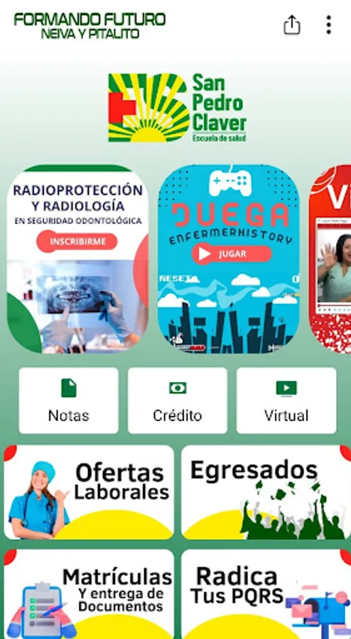 This is the mobile application of the San Pedro Claver School of Health in Huila,