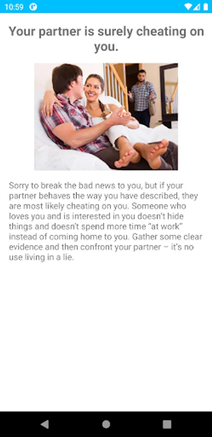 You may have a feeling in your gut about your partner cheating on you, but you can't be 100% sure if it's true. As long as you answer these questions honestly about your current situation, you will finally know the truth.