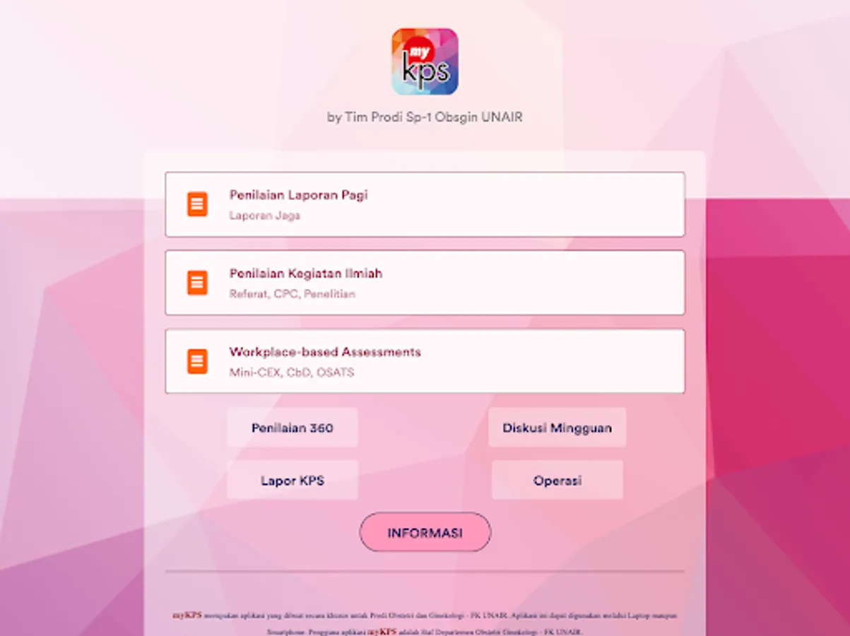 myKPS is a flexible, robust, easy-to-access, which can be embedded in every generation devices. It is a smart educational system, which enables every feature, functions and completes the daily needs of Study Program Sp-1 Obsgin FKUA/ KSM Obsgin RSDS