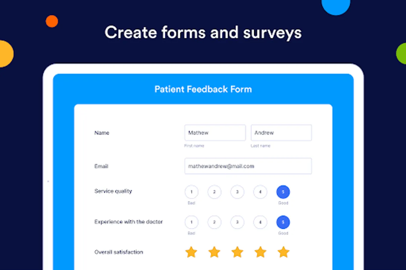 Jotform Mobile Forms app is an online form builder that lets you create forms for data collection even when you are offline. Jotform's form and survey creator is powered up with 10,000+ free form templates.