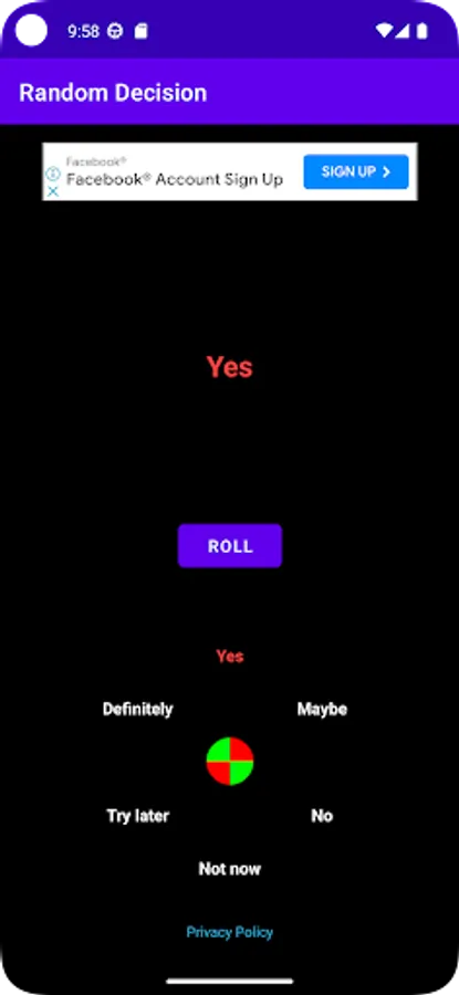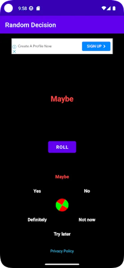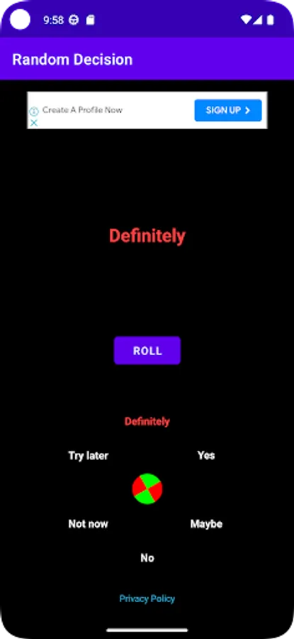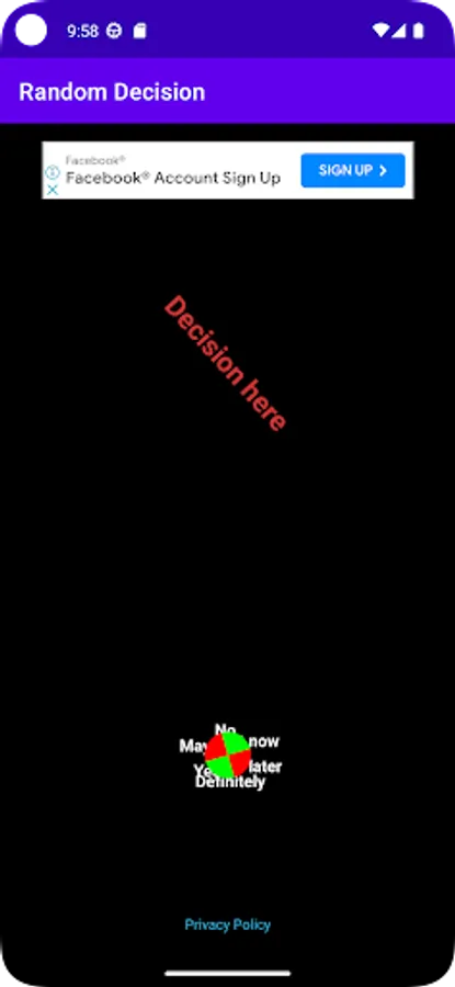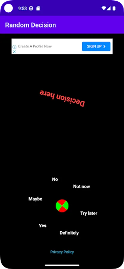 "Random Decision" is an entertaining game that offers random decisions to the user. By spinning a 3D cube, users can receive answers like "Yes", "Maybe", and "No". It's designed to provide fun moments and amusement, and it's not recommended to rely on it for real-life decisions.