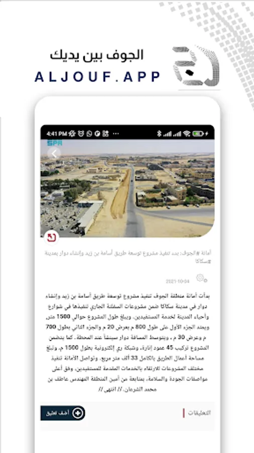 The application of Al-Jouf area was designed to serve the people of Al-Jawf and its visitors and all members of the community. Where services vary to suit the largest segment of users and facilitate access to information quickly and effectively. Services allow the user to know everything related to Al-Jawf area, as well as the region's activities.