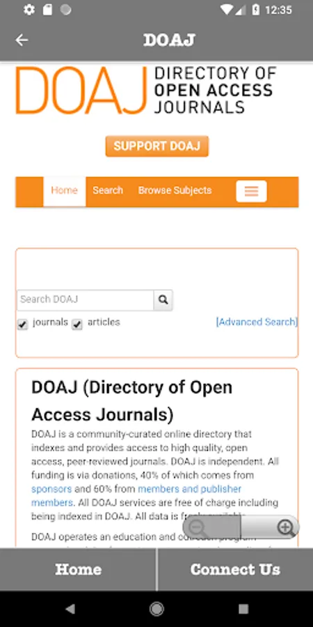Journals DB Android app provides indexing of multiple databases which included journals in their databases