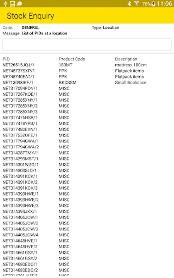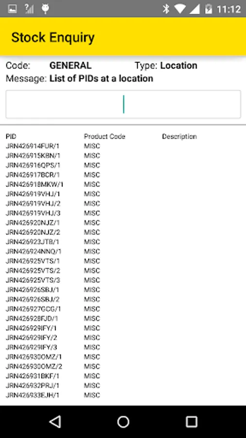 * Stock Enquiry - Scan a PID or Location barcode to see related data.