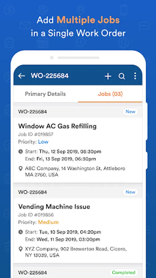- Schedule a work order and multiple jobs in it, and assign those jobs to team members.