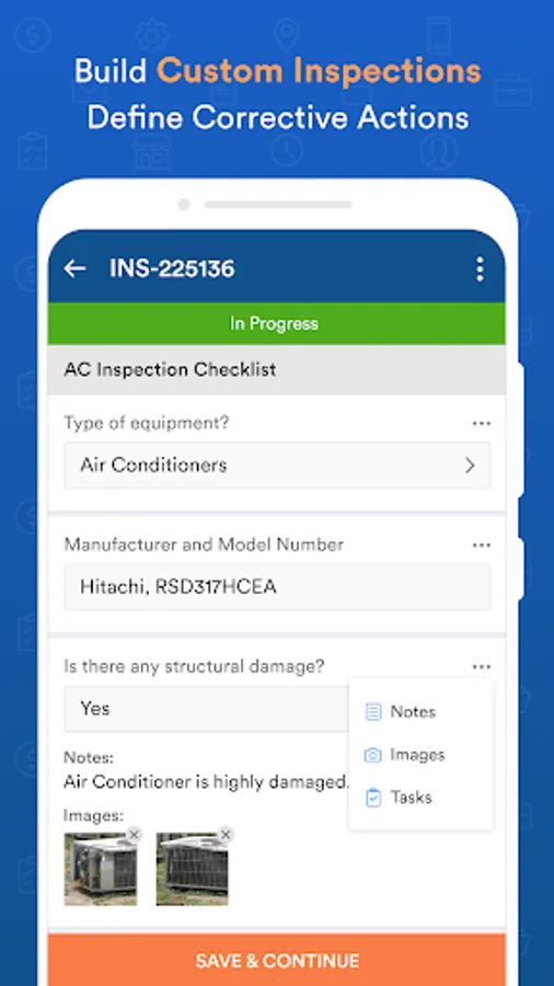 - Create corrective actions on inspections for your team and customers to remain compliant and reduce risks.