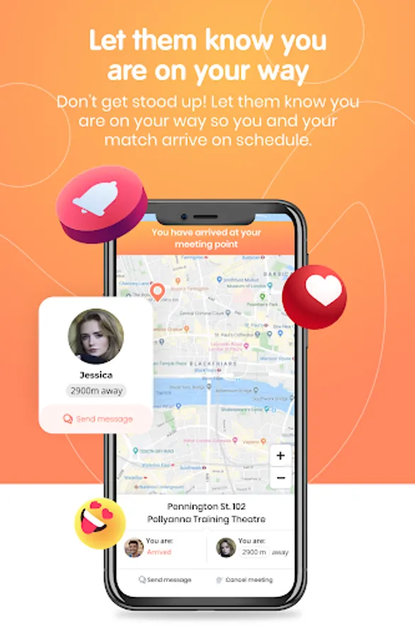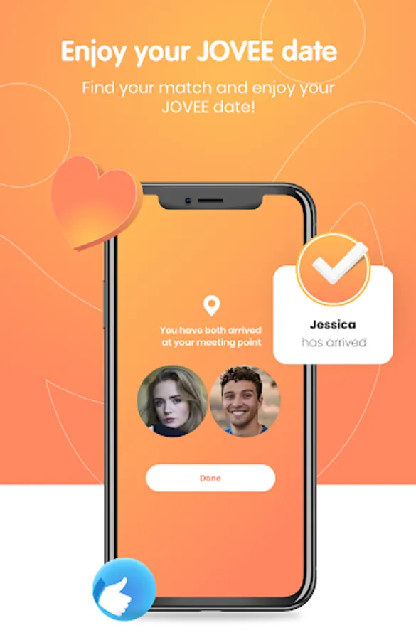 • It’s Date Night! On the day of your date, JOVEE will notify your trusted contacts with your date details for extra safety. You will also be able to see how far away your date is from your date spot guaranteeing you won’t get stood up. So all you have to do is show up and enjoy yourself.