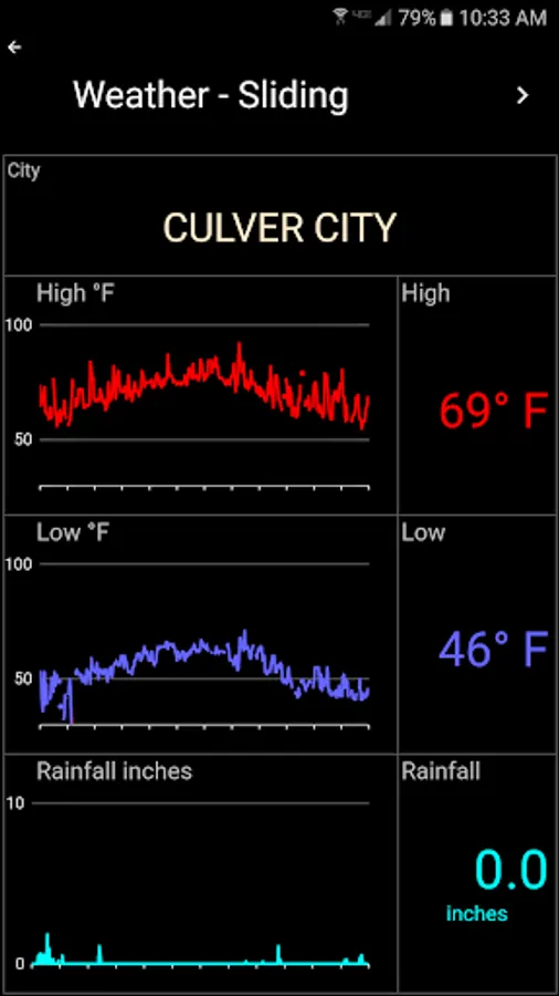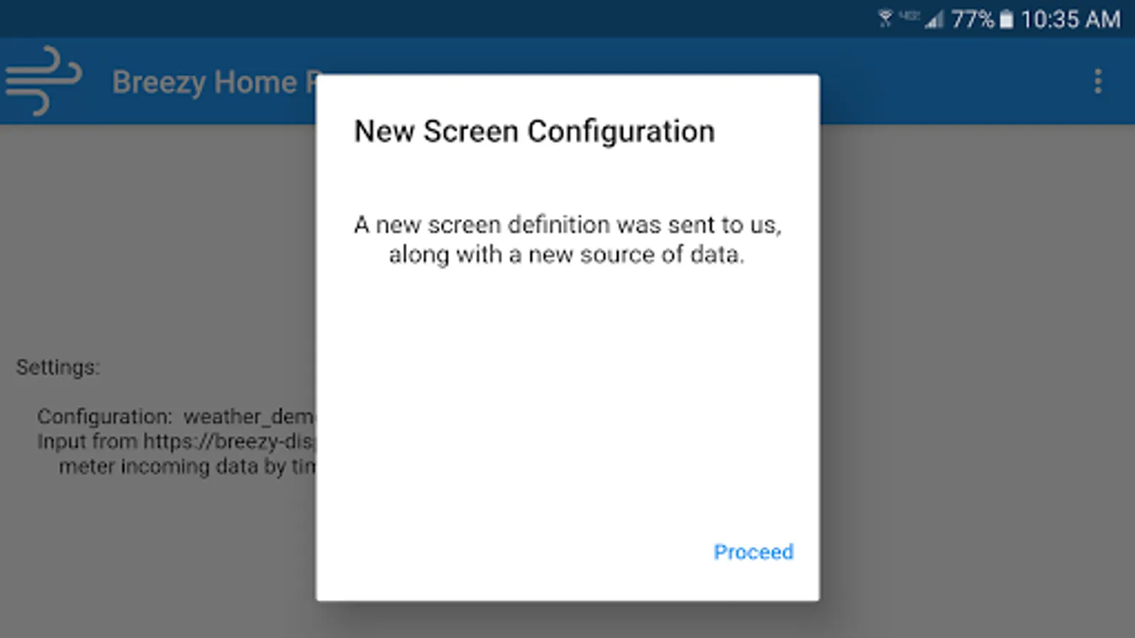 Application that displays graphical data from an embedded controller, like an Arduino. Data can be sent via the serial port, Bluetooth/RFCOMM, and via TCP/IP sockets. Time-based data is presented on two kinds of graphs, or numerically. The app can be configured to control the elements in the data feed, and how they are displayed across any number of screens. Configuration is done with a straightforward JSON file.