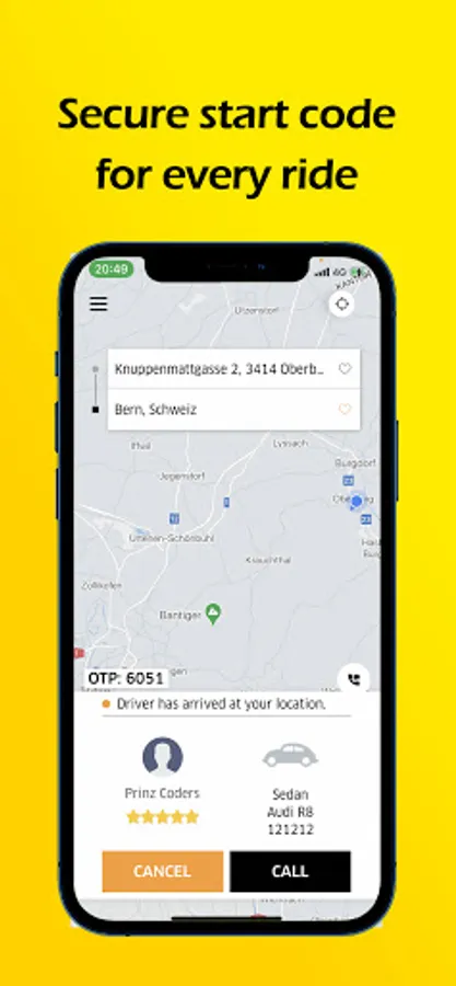 You can call the emergency services directly from the app, and your location and trip details will be displayed so you can share them quickly with emergency services.
