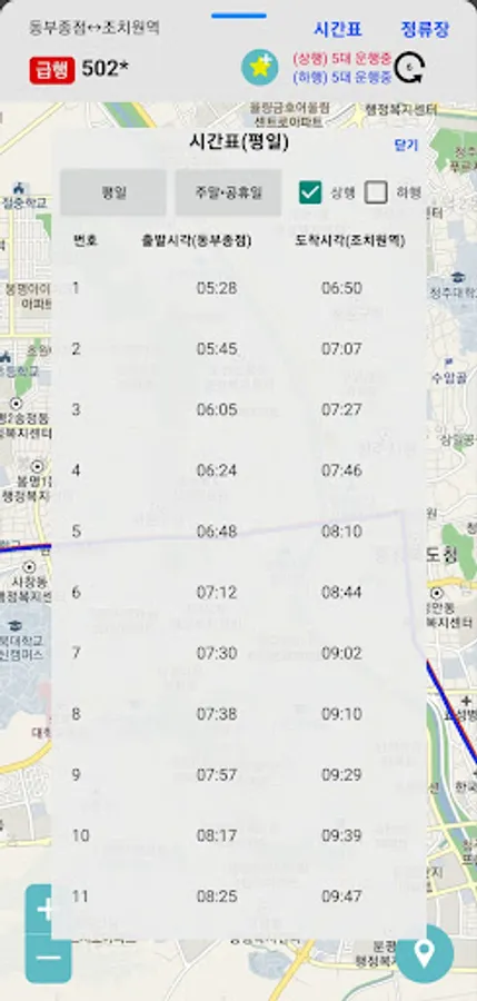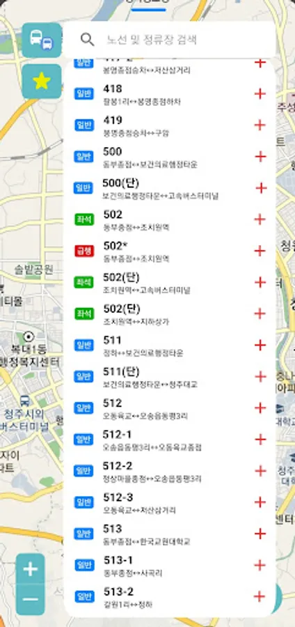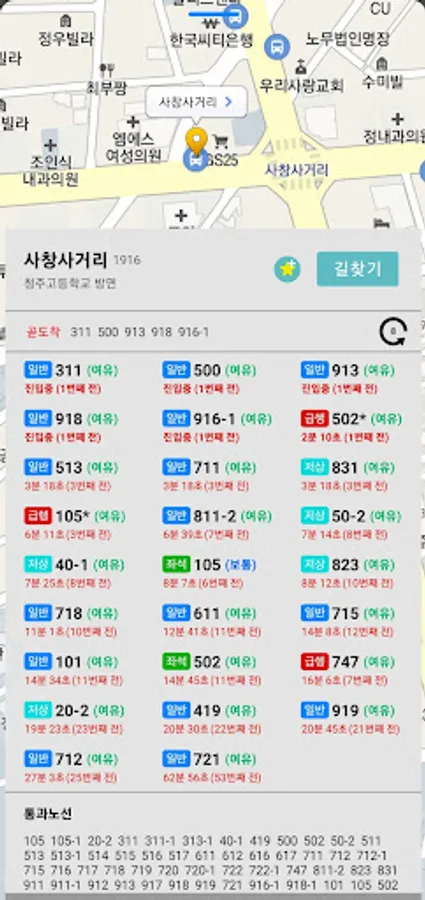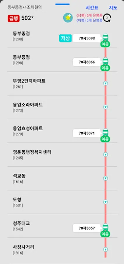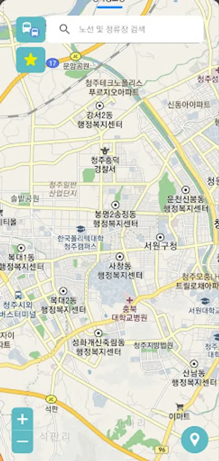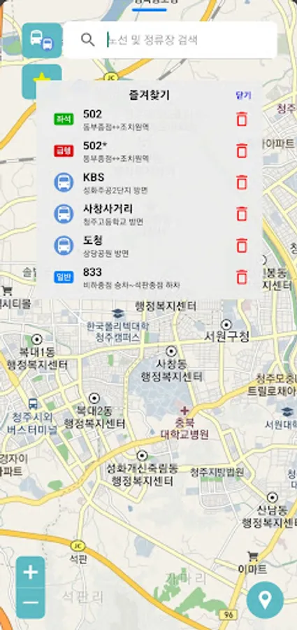 Cheongju city bus route information, stop search, timetable confirmation, arrival information inquiry, app that provides real-time bus location.