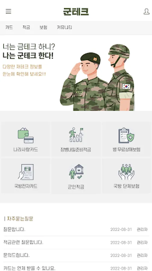 Guntech can obtain real-time information on country love cards, national defense group insurance, and military savings for tomorrow.