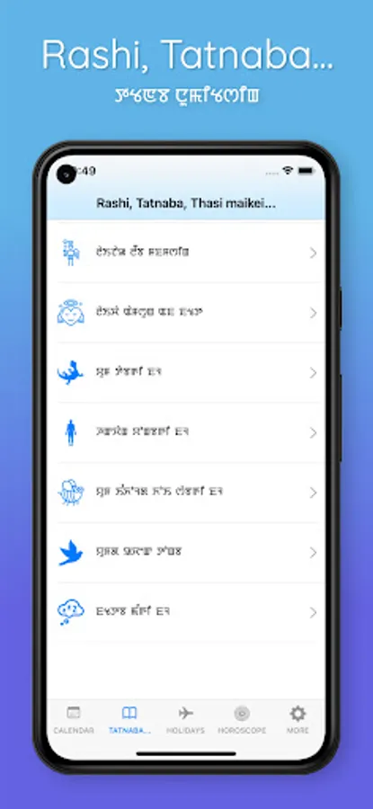 A simple manipuri calendar for all the fellow Manipuris, it has Manipuri calendar for 2015, Manipuri Calendar 2016 , Manipuri Calendar 2017 & Manipuri Calendar 2018, Manipuri Calendar 2019, Manipuri Calendar 2020, Manipuri Calendar 2021, Manipuri Calendar 2022,Manipuri Calendar 2023. It shows all the dates/days using lunar calendar. You can tap on next and previous button to navigate through months.