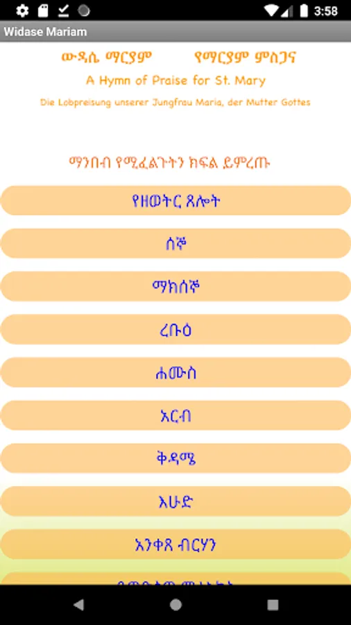 According to the Ethiopian Orthodox Tewahedo Church curriculum, students continue to pray in the vocabulary section of the subject and continue to learn this praises through reading and hymn.