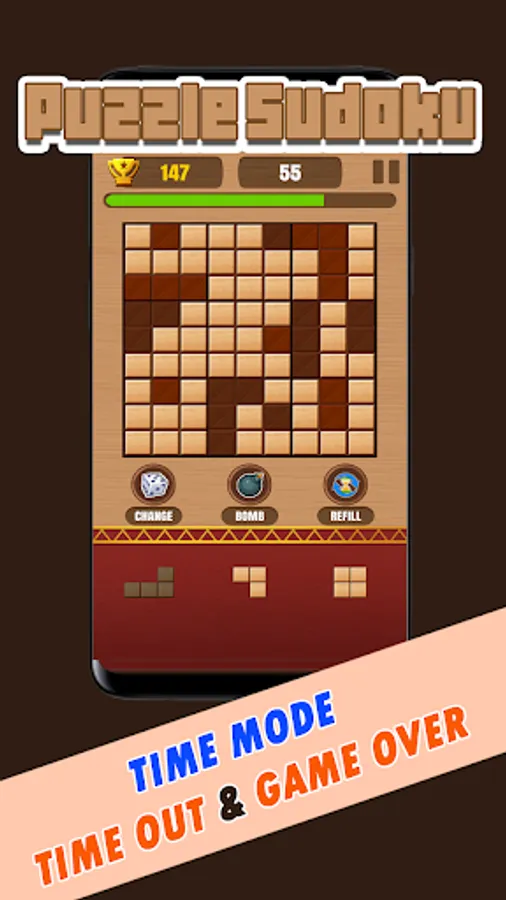 Enjoy the new wood block puzzle, The time bar is increased a little on clearing row or column! Time is life!