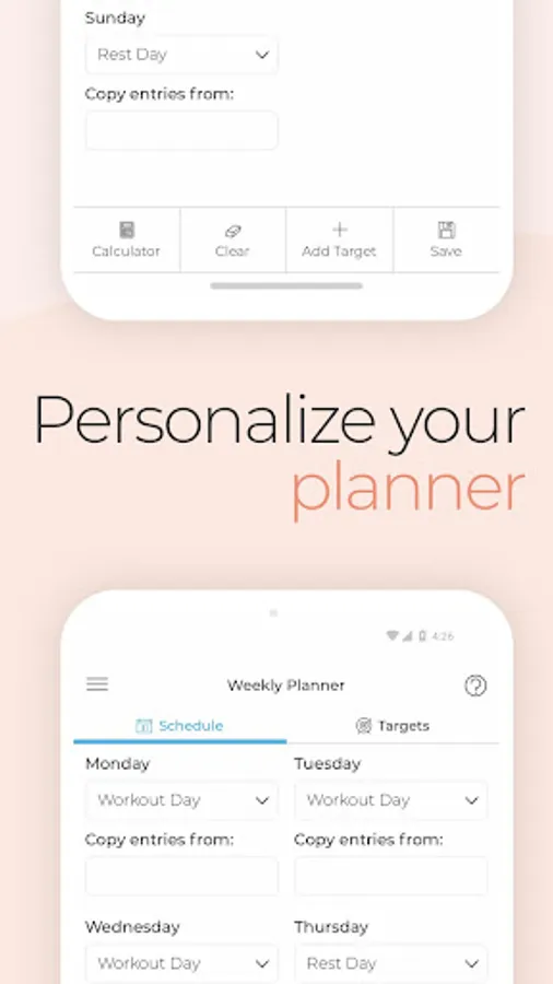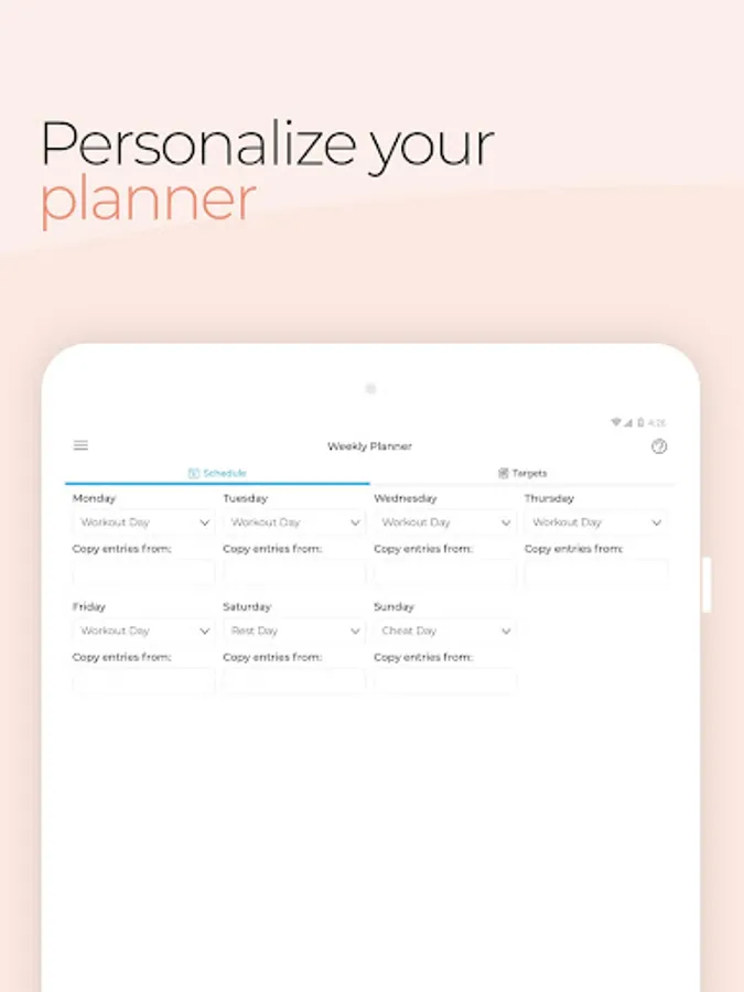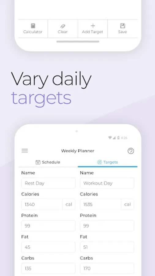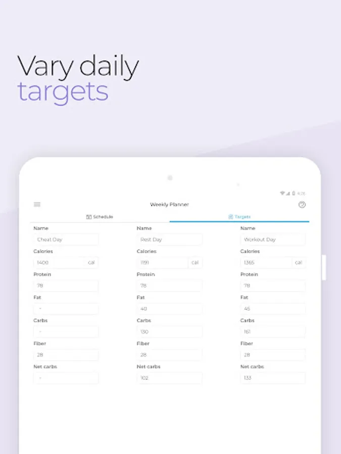 - Vary your macro targets per day and set them in your weekly planner