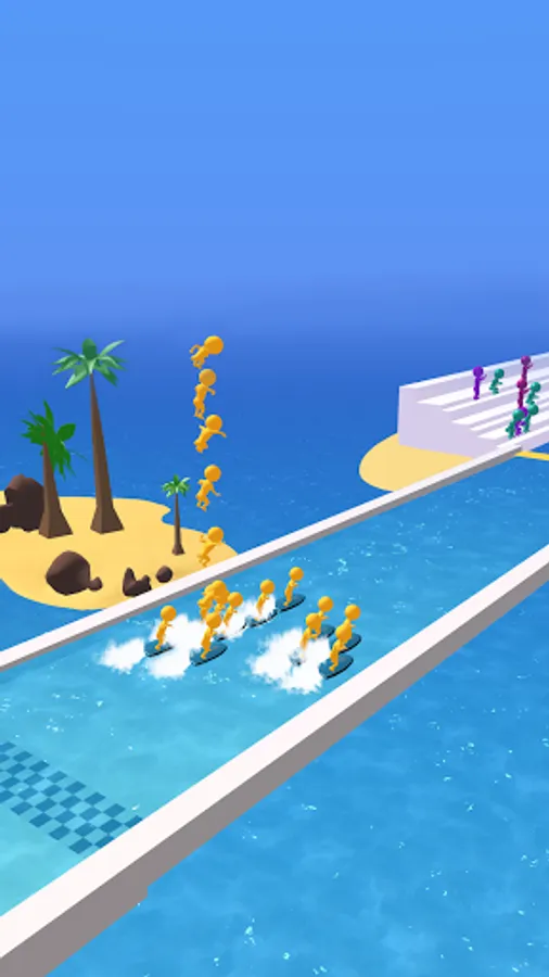 Start surfing alone🏃♂️ and gather people on your way to collect a massive crowd. Lead your team through all sorts of moving, rotating🌪️, and expanding😈 obstacles. Calculate your moves on the run and gather as many members of the crowd as possible.