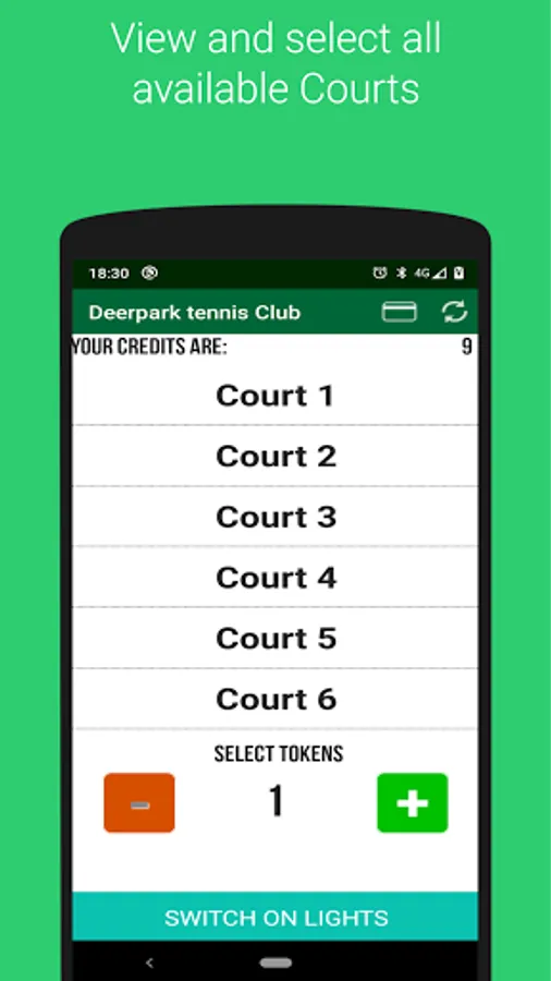 The official Deerpark Tennis Club app allows our members to control the lights on the courts. Removing the requirement to carry physical tokens or cash when coming into the club for a game.