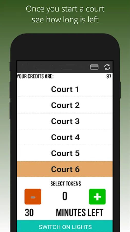 The official Ennis Tennis Club app allows our members to control the lights on the courts. Removing the requirement to carry physical tokens or cash when coming into the club for a game.