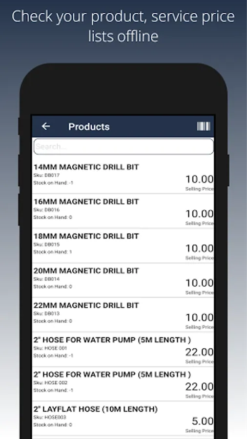 Add new goods and services to your inventory on the fly and get quick looks into the stock level in individual stores.