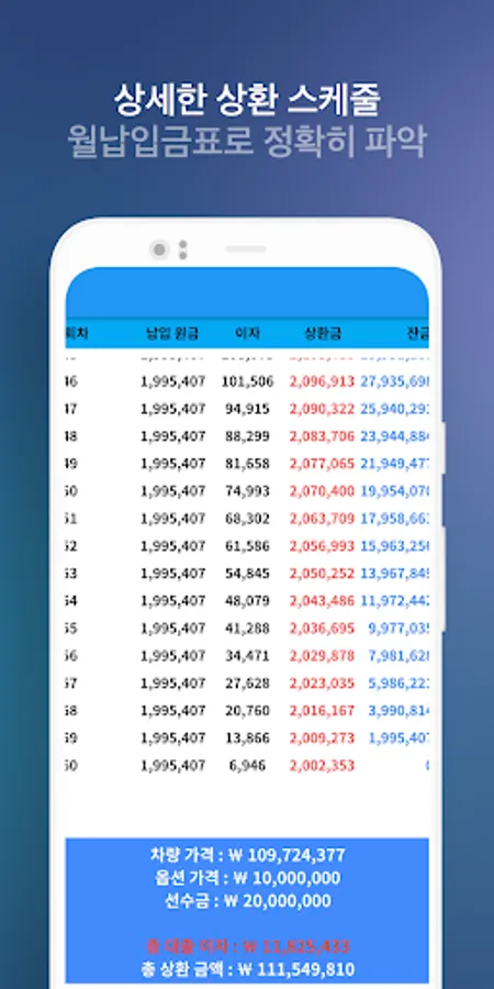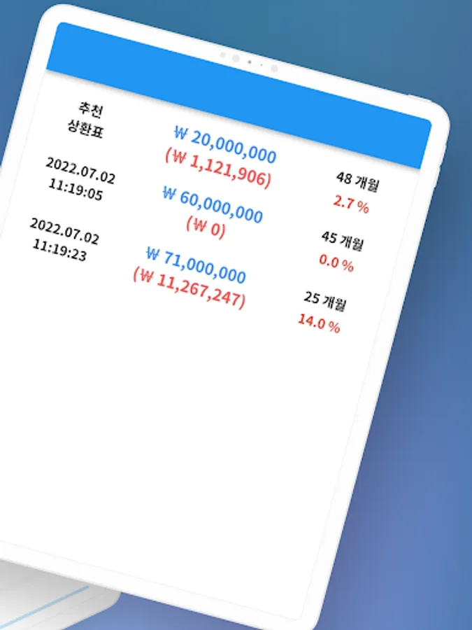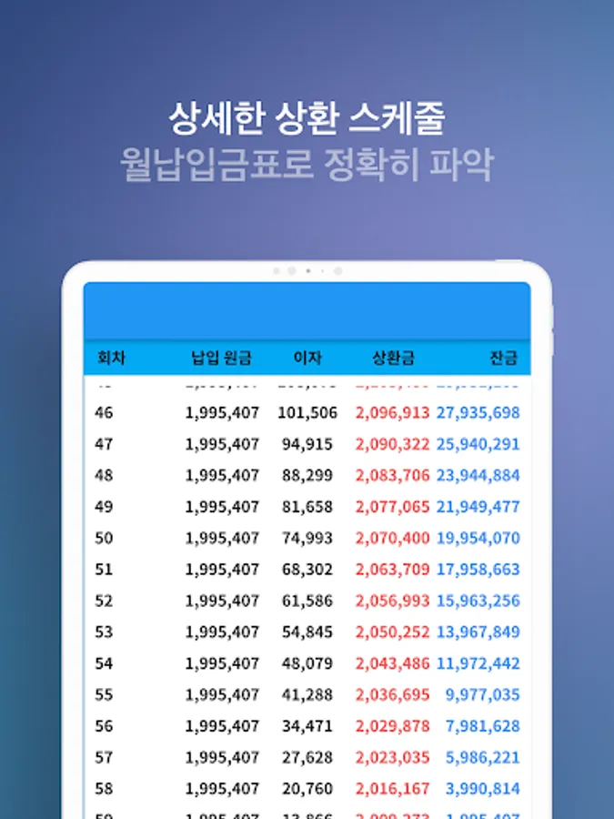The loan repayment method used in the app is calculated using the principle and equal repayment method (the repayment amount is the same every month).