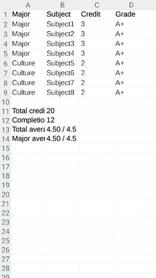 • We will calculate the total grade and majors according to the credits of major and liberal arts courses.