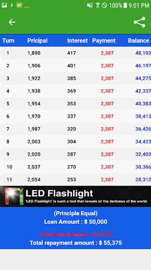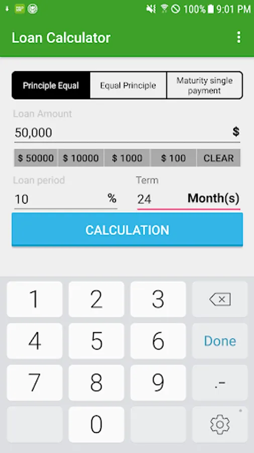 Depending on the loan amount, interest rate and period, the 'loan calculator'