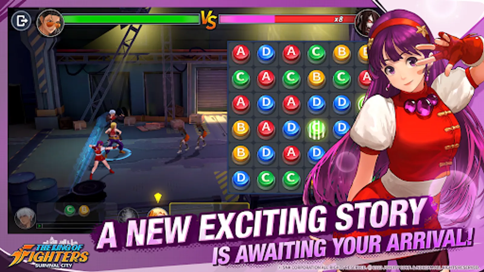 Recruit various fighters in the KOF series and construct buildings in the base.