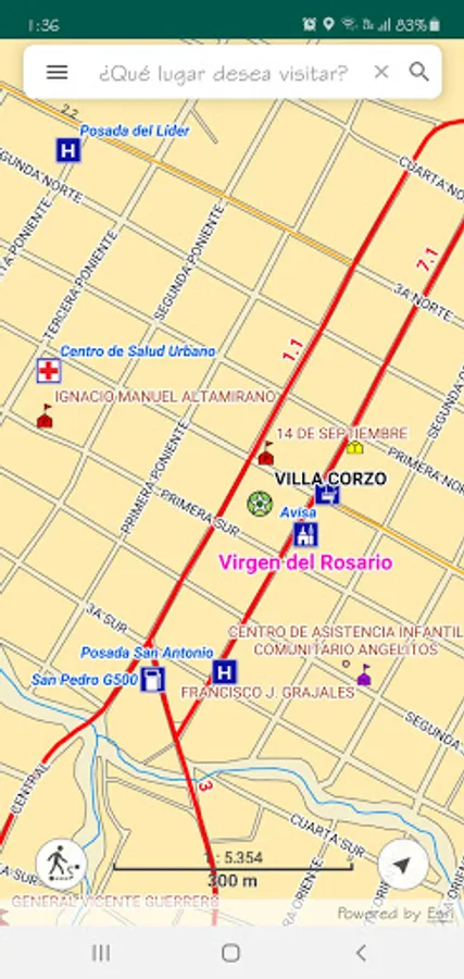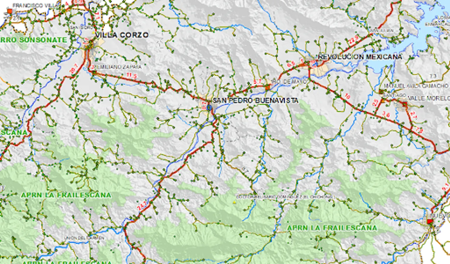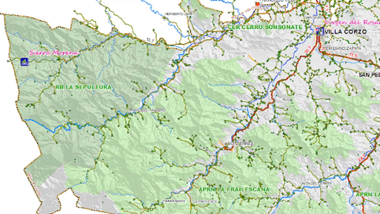 Map of the municipality with towns, roads and paths, rivers and lagoons, tourist attractions, basic services, topography and relief of the territory.