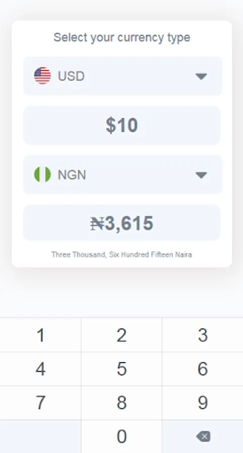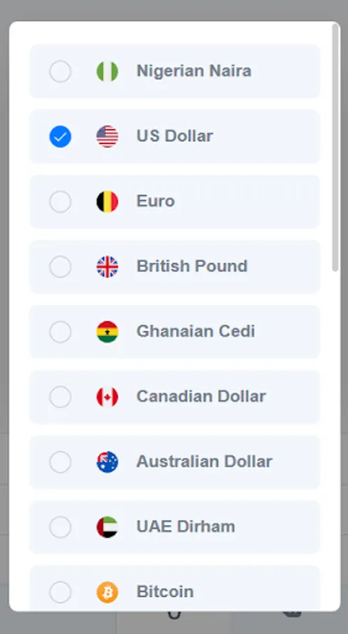 Supports currencies for most countries including the naira, dollar, euro, pound, yuan, rupee, virtual currencies like Bitcoin and more!