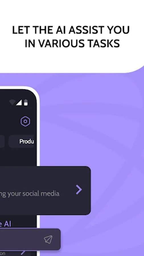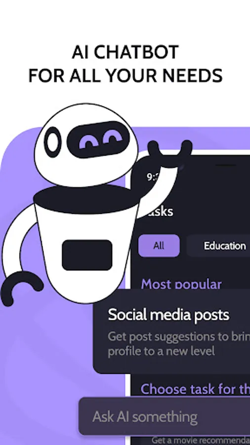 Choose from a variety of tasks and topics and use convenient prompts to quickly get things done with the help of the AI chatbot and make your life easier. You will always be able to send a personal request to your AI to fulfill your needs or simply use a compilation of the most popular requests to always stay in tune with the trends. To summarize, your trusty virtual assistant will always be with you, whatever you need help with: just ask AI!